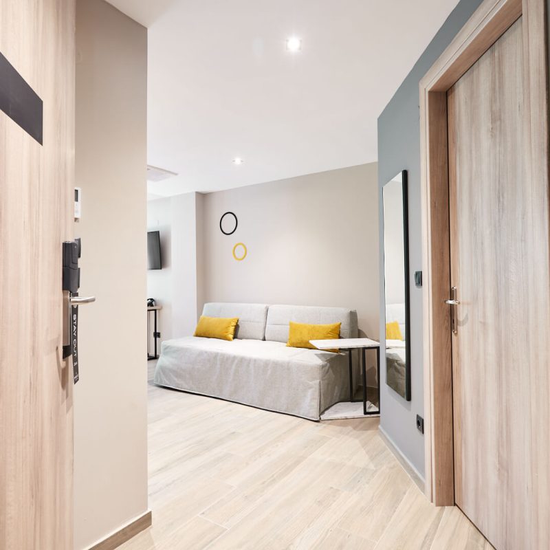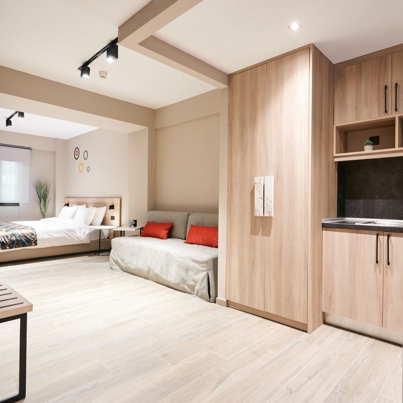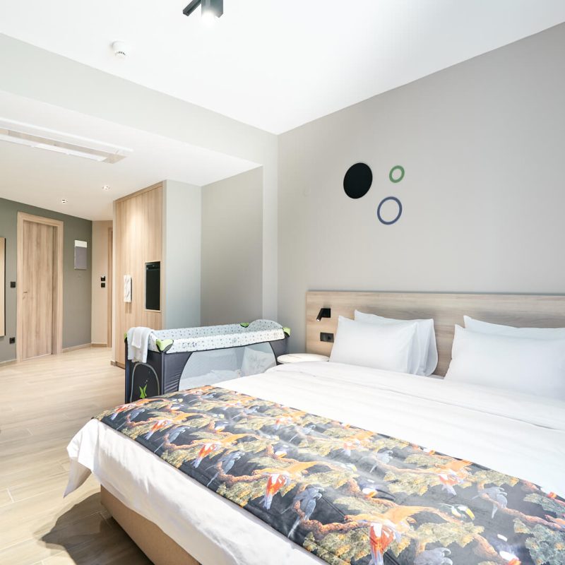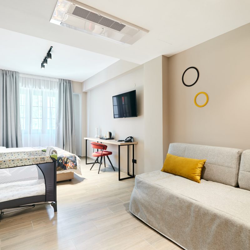 Specifically designed for people who travel with family (or with company), since its three-seat couch can turn to 2 beds of 85Χ200 cm. The fully equipped kitchen included in some of the rooms of this category, will ensure an easier stay for you, providing you with the opportunity to satisfy unscheduled demands of children and adults.